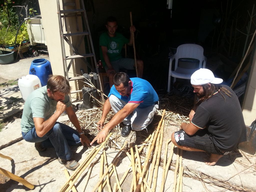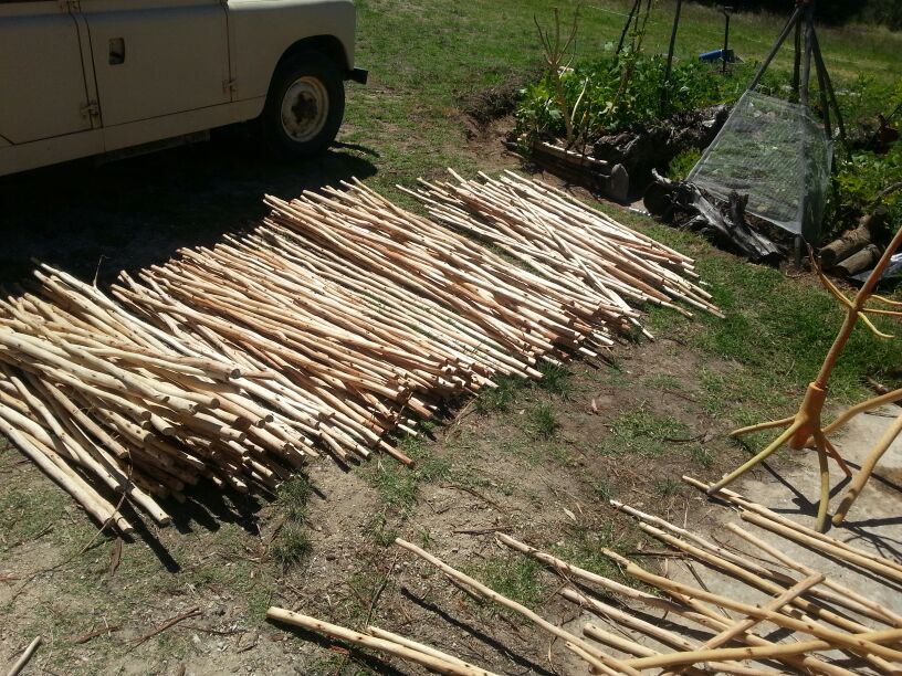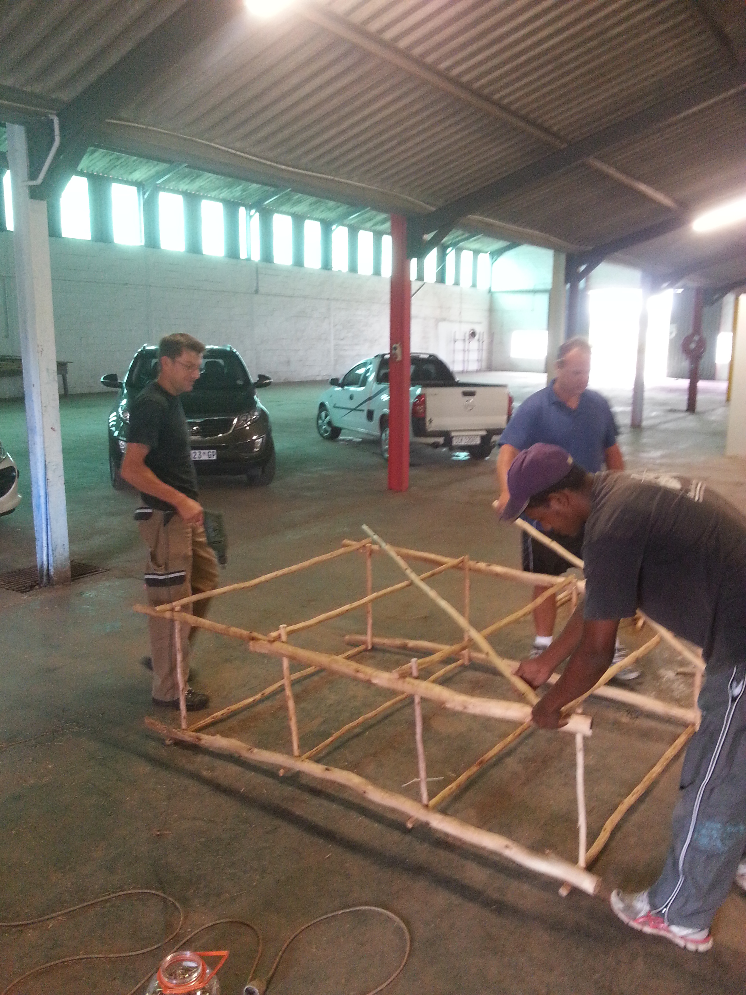 In January we started cutting down alien branches to make our own mushroom shelving. We employed locals to cut and trim these branches to the correct measurements. We started assembling these shelves with the help of Francois, David (friend and board member of Makarios), Johan, Alfonso (a local), and myself.